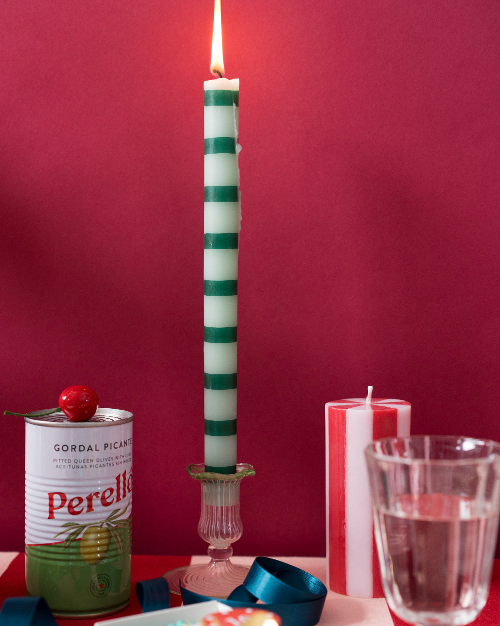 Green Stripe Straight Dinner Candle